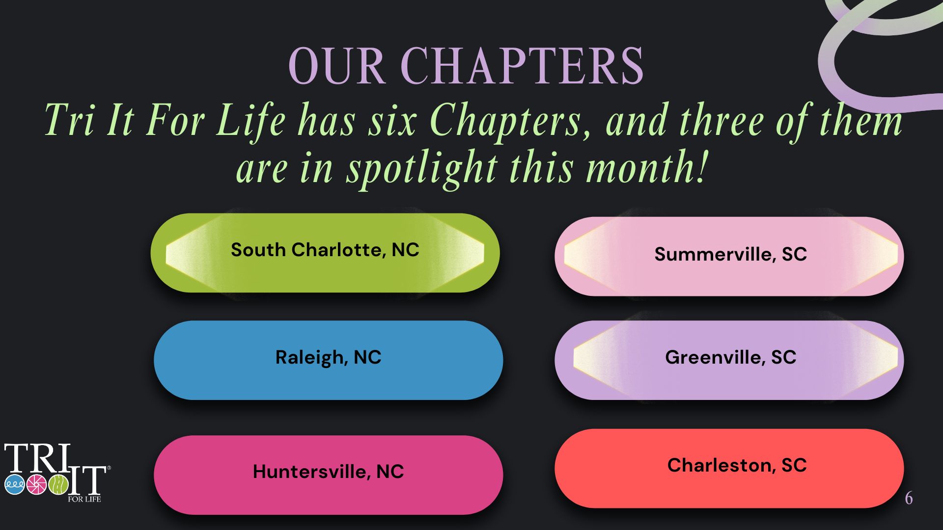 Our first Chapter was founded in 2006. We now have six Chapters in two states.