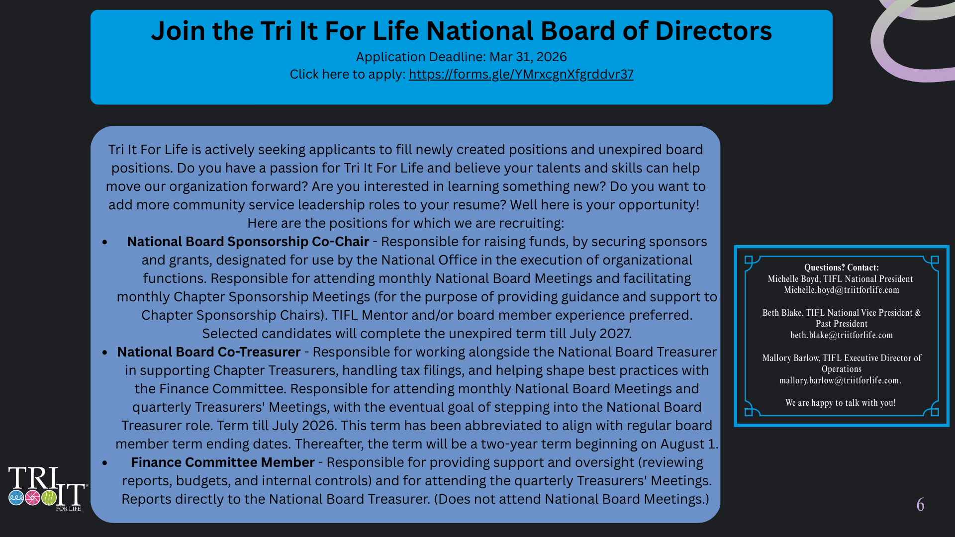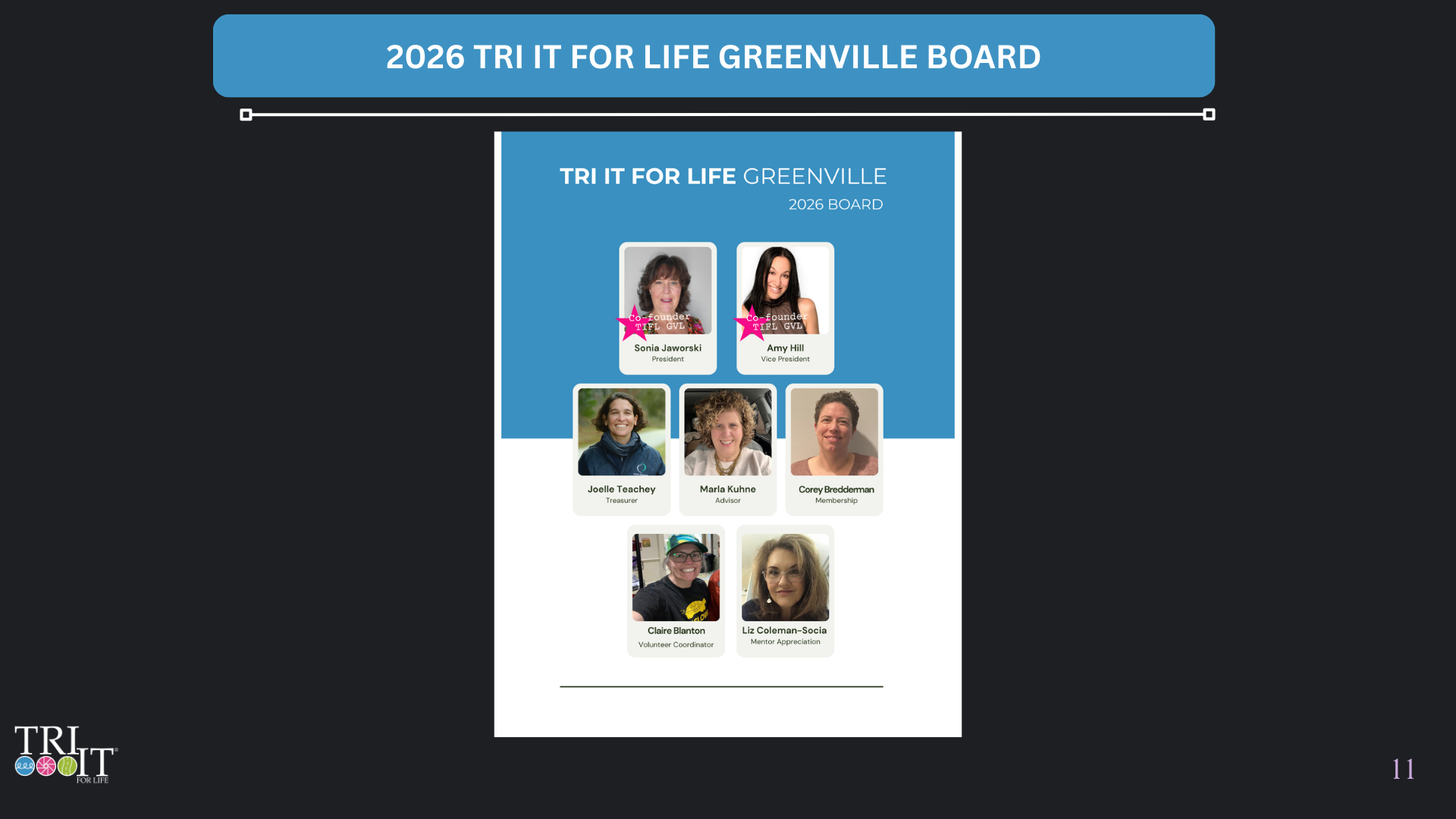 Tri It For Life is a non-profit, volunteer-led organization. Meet the national leadership team.